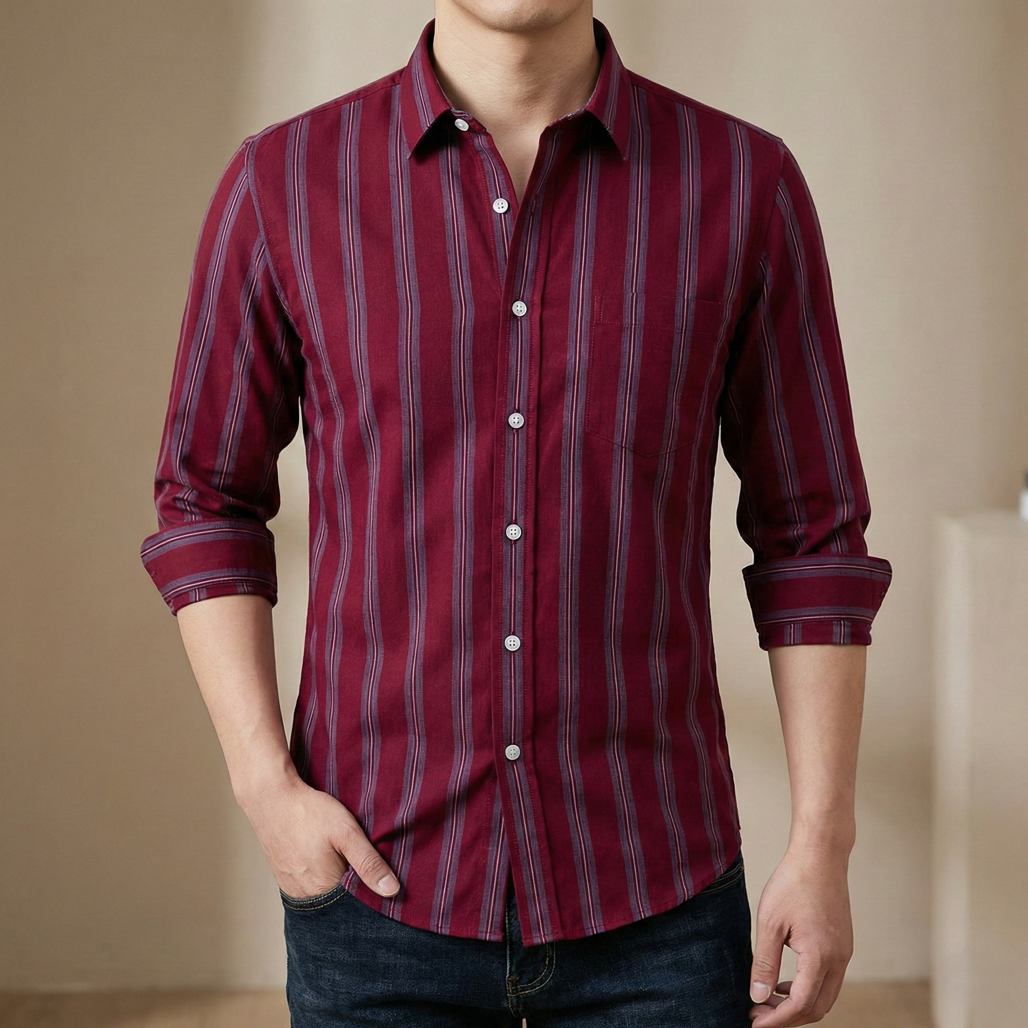 Mens long sleeve Strip shirt